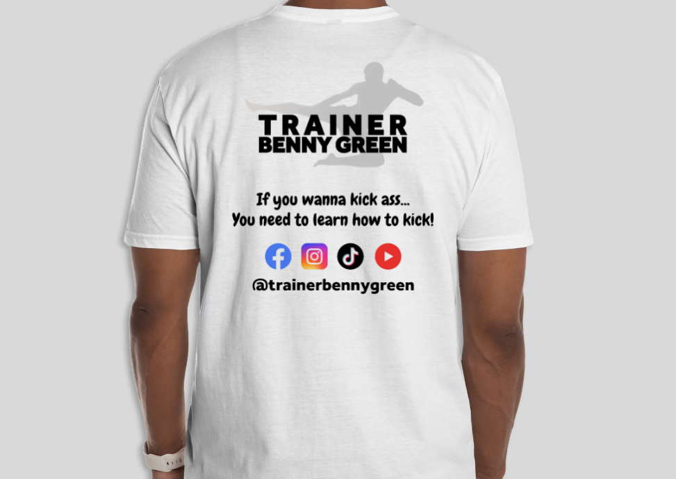 Kick harder. Train smarter. The official Trainer Benny Green tee – bold design, premium fit, and a quote that hits as hard as your training.
